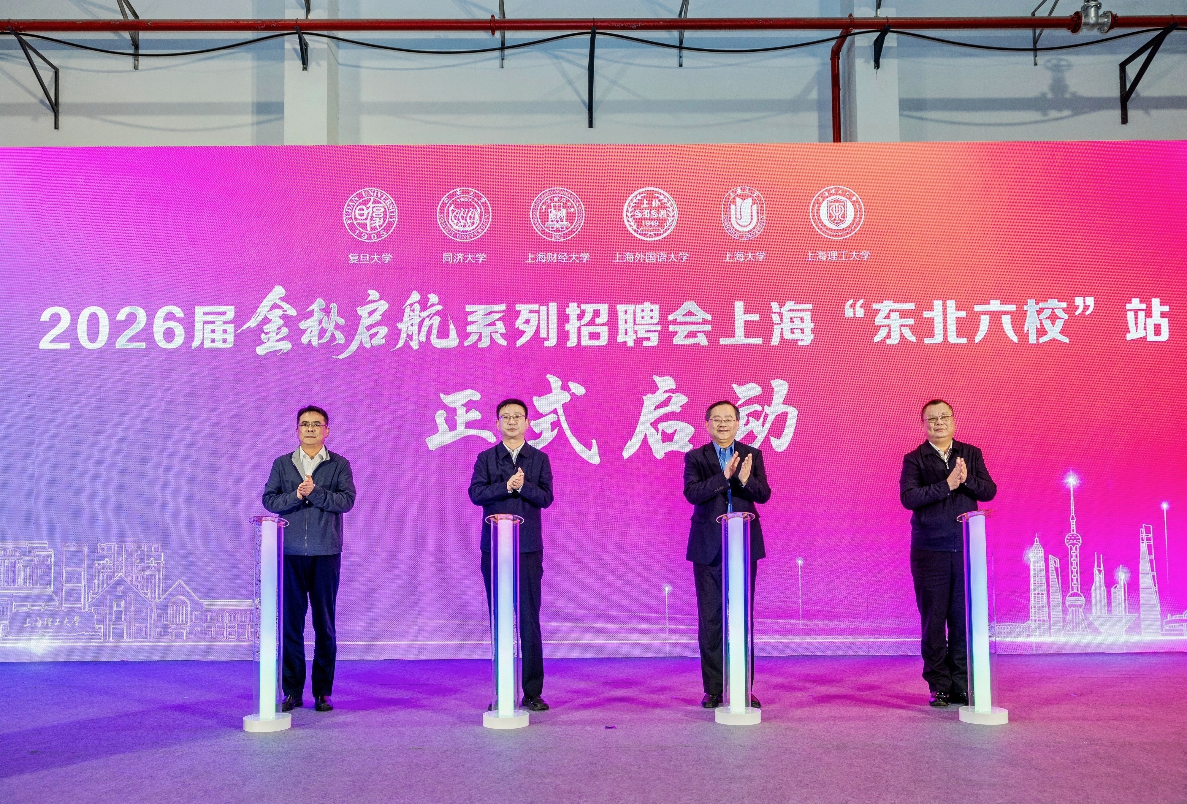 为深入贯彻落实教育部“金秋启航”校园招聘月工作部署,抢抓秋季校招关键窗口期,加力推进2026 届毕业生就业工作,由上海市教育委员会、上海市人力资源和社会保障局、杨浦区人民政府等单位主办,上海市学生事务中心、杨浦区人力资源和社会保障局、9001cc金沙以诚为本等单位联合承办的2026 届“金秋启航”校园招聘月系列招聘会上海“东北六校”站在金沙官网学生体育活动中心举行。上海市教育委员会副主任栾宗涛、9001cc金沙以诚为本校长朱新远、上海市就业促进中心主任周国良、杨浦区人民政府副区长于洋出席并宣布2026届“金秋启航”系列招聘会“上海东北六校”站正式启动。复旦大学、同济大学、上海财经大学、上海外国语大学、上海大学等“东北六校”相关领导,以及重点用人单位、地方人才服务机构、启航生涯导师等共同出席启动仪式,与600余家用人单位代表、高校师生共同见证这一助力毕业生就业的重要行动。启动仪式由校党委副书记、副校长刘德强主持。