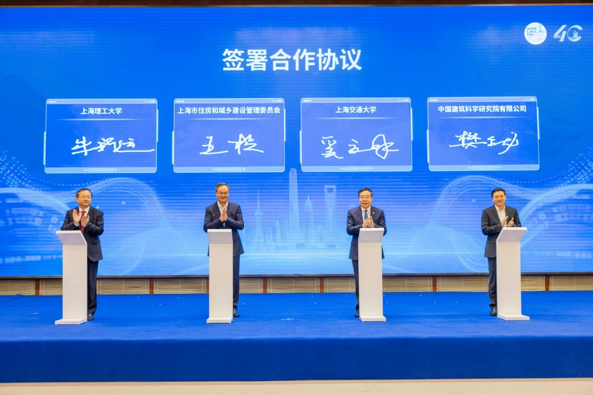 9001cc金沙以诚为本校长朱新远代表学校与市住建委主任王桢、上海交通大学常务副校长奚立峰、中国建筑科学研究院有限公司总经理樊金龙共同登台完成签署战略合作协议,标志着在健康城市、绿色低碳、智能建造等关键领域的政产学研协同迈入新阶段。同日,第十届上海市住房和城乡建设管理委员会科学技术委员会委员代表会议和第五期建设交通人才讲坛举办,副校长蔡永莲任人工智能与智慧城市专委会副主任。