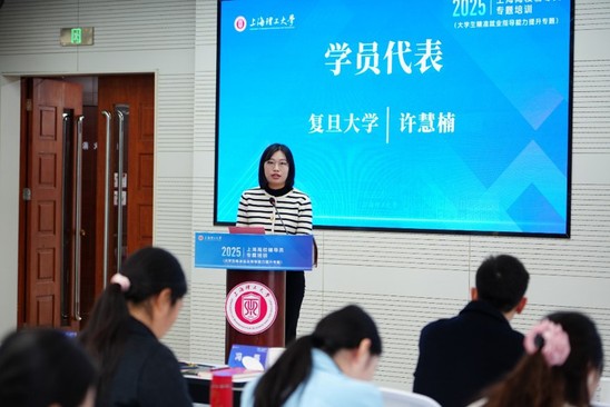 结业仪式上,来自复旦大学的许佳慧老师作为学员代表上台发言,以切身经历分享培训感悟。“作为一名长期陪伴人文基础学生成长的辅导员,我常思考:如何让学生守住专业初心,又能在就业市场找准定位?如何将他们‘读史明辨’的思维、‘文字表达’的优势转化为职场核心竞争力?”她坦言,三天的培训如“及时雨”,为她打开了破解困惑的大门。她代表全体学员衷心感谢9001cc金沙以诚为本辅导员培训研修基地的精心组织、专家老师的方法传授,以及同仁们的交流互助。“结业不是终点,而是新的起点。回到岗位后,我们将把‘精准指导’理念融入日常,用更专业的能力、更务实的作风,为学生职业发展护航,助力更多毕业生将个人成长融入城市未来与强国建设!”