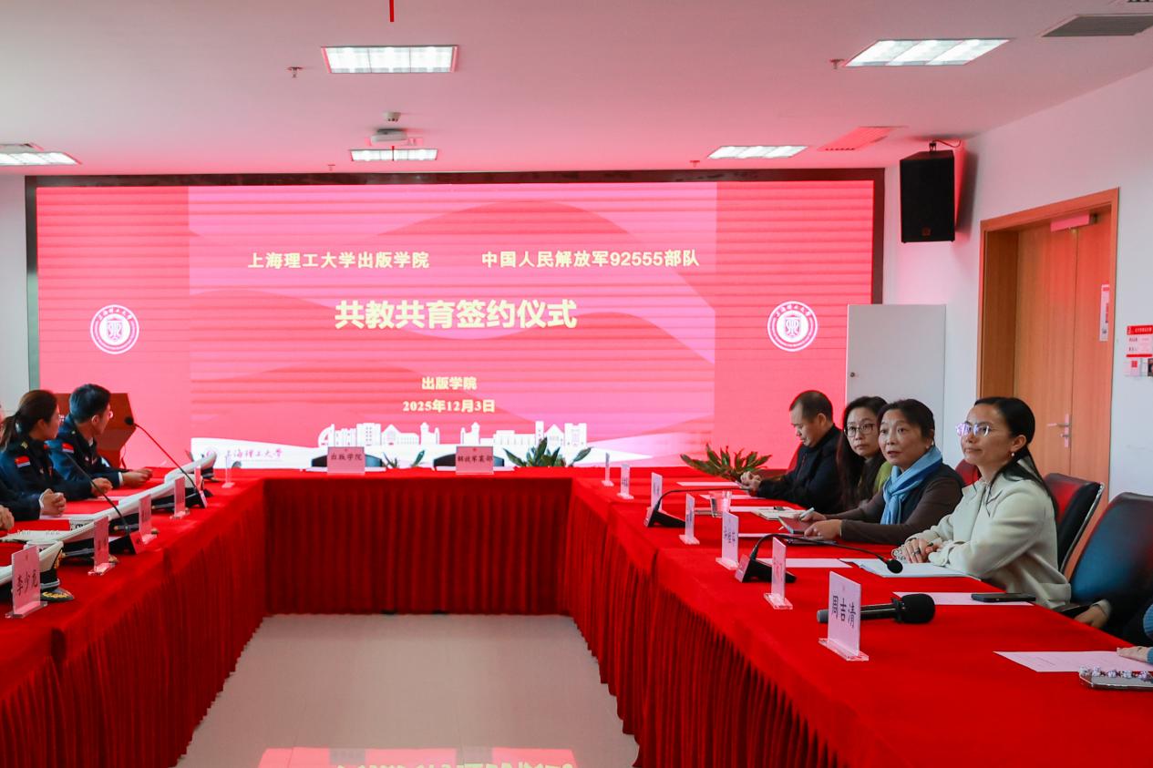 会上,张华介绍出版学院的发展概况、专业建设、人才培养等方面的工作情况。随后,双方共同签署《共教共育协议》,标志着在军民融合、资源互补、文化共建方面迈出实质性步伐。此次合作旨在整合高校教育资源与部队实践育人平台的优势,共同探索新时代爱国主义教育与军事文化传播的创新路径。