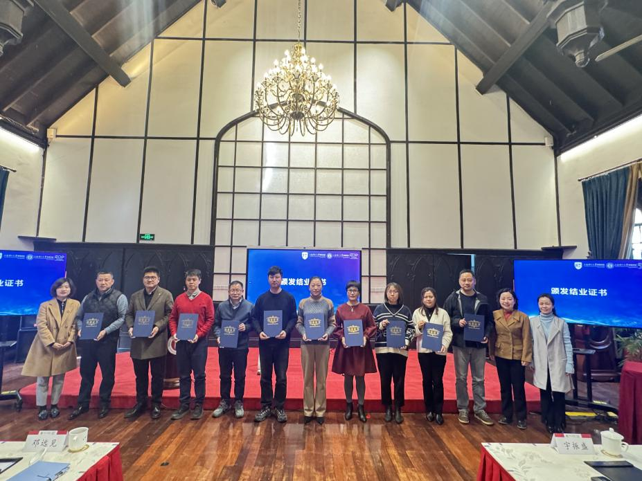学员代表上海中智科创服务外包有限公司副总经理谢风鹏、卡思优派人力资源集团全国商务开发总监吴浩文分享了学习体会,高度评价课程“既有战略高度,又接地气”,特别是AI赋能招聘效率提升、出海企业合规体系建设等内容对破解“降本增效”行业瓶颈具有直接指导价值。杨浦区人力资源和社会保障局副局长周遐玮,9001cc金沙以诚为本继续教育学院副院长张爱阳、学生处副处长冯磊分别为学员颁发结业证书。