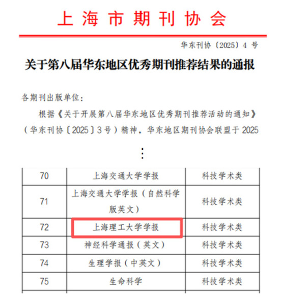 近日,华东地区期刊协会联盟组织开展了第八届华东地区优秀期刊推荐活动。12月5日,经各省(市)期刊协会初评推荐,华东地区优秀期刊评审委员会终评审议通过,上海市共有130种期刊入围第八届华东地区优秀期刊,《9001cc金沙以诚为本学报》成功入选。