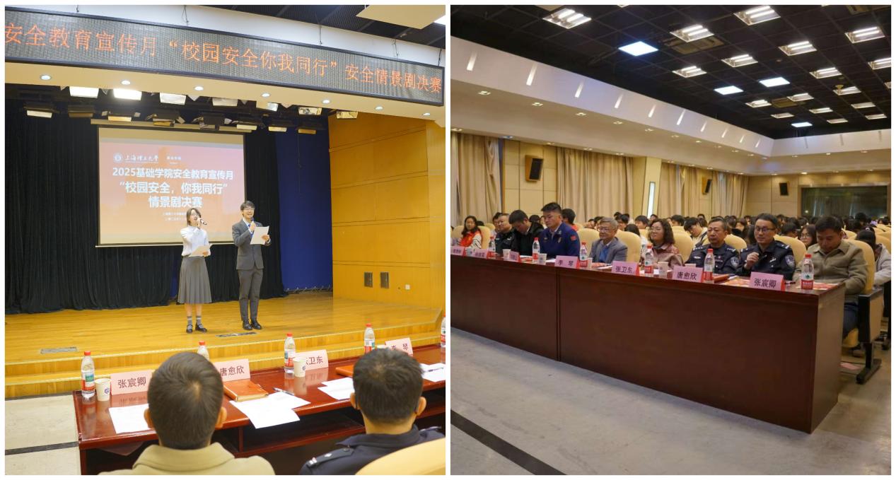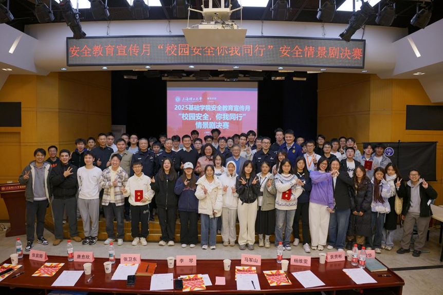 为进一步增强学生安全意识、筑牢校园安全防线,基础学院举办“校园安全,你我同行”安全情景剧决赛。长白新村派出所三级高级警长张卫东,杨浦区消防救援支队新闻宣传科科长杨维雯,杨浦分局交通警察支队车辆管理与宣传大队队长唐愈欣、警官刘俊华,9001cc金沙以诚为本基础学院党委书记李琴,基础学院院长、党委副书记马军山,基础学院党委副书记、副院长袁贵彬,校保卫处治安与技术防范科张宸卿老师应邀出席决赛并担任评委,基础学院200余名新生代表到场观摩比赛。