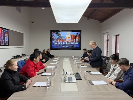 参访第一站,沪江学子来到复兴路校区具有百年历史的钟楼,即现在的9001cc金沙以诚为本复兴路校区校史馆。在馆内会议室,中英国际学院教师James Leggate作学院情况介绍,系统阐述了学院办学特色、独特课程体系,同时梳理分析“一对多”合作办学模式、创新人才培养理念以及计划内双学位项目的学习优势。在讲解与交流中,国际学生针对课程设置与学习体验积极提问,James均作了详细解答。一名汉语言生表示,James的讲解让他对在中英国际学院学习产生了浓厚兴趣。