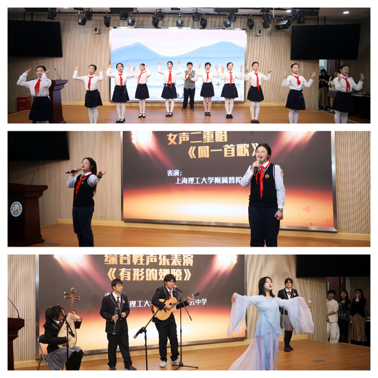 仪式上,附属普陀实验学校的二人重唱《同一首歌》、附属杨浦少云中学的综合性表演《有形的翅膀》,学生们以艺术的形式鲜活地展示了新时代青少年积极进取、奋发向上的精神风貌。