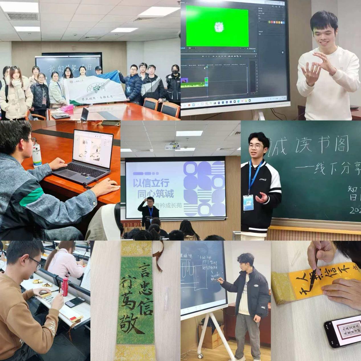 德育苑以“以信立行,同心筑诚”为主线,通过“快问快答”“蒙眼协作”“小组作业分工博弈”三重递进式情境体验,引导学生在模拟现实中直面诚信抉择,深刻体悟诚信作为人际信任基石与团队协作增效器的双重价值。同期开展的“技能加满,诚信为魂”实用技能工作坊,将诚信准则融入PPT制作与视频剪辑的限时创作任务中,在提升学生信息技术应用能力的同时,强化了学术诚信意识与创新实践素养。