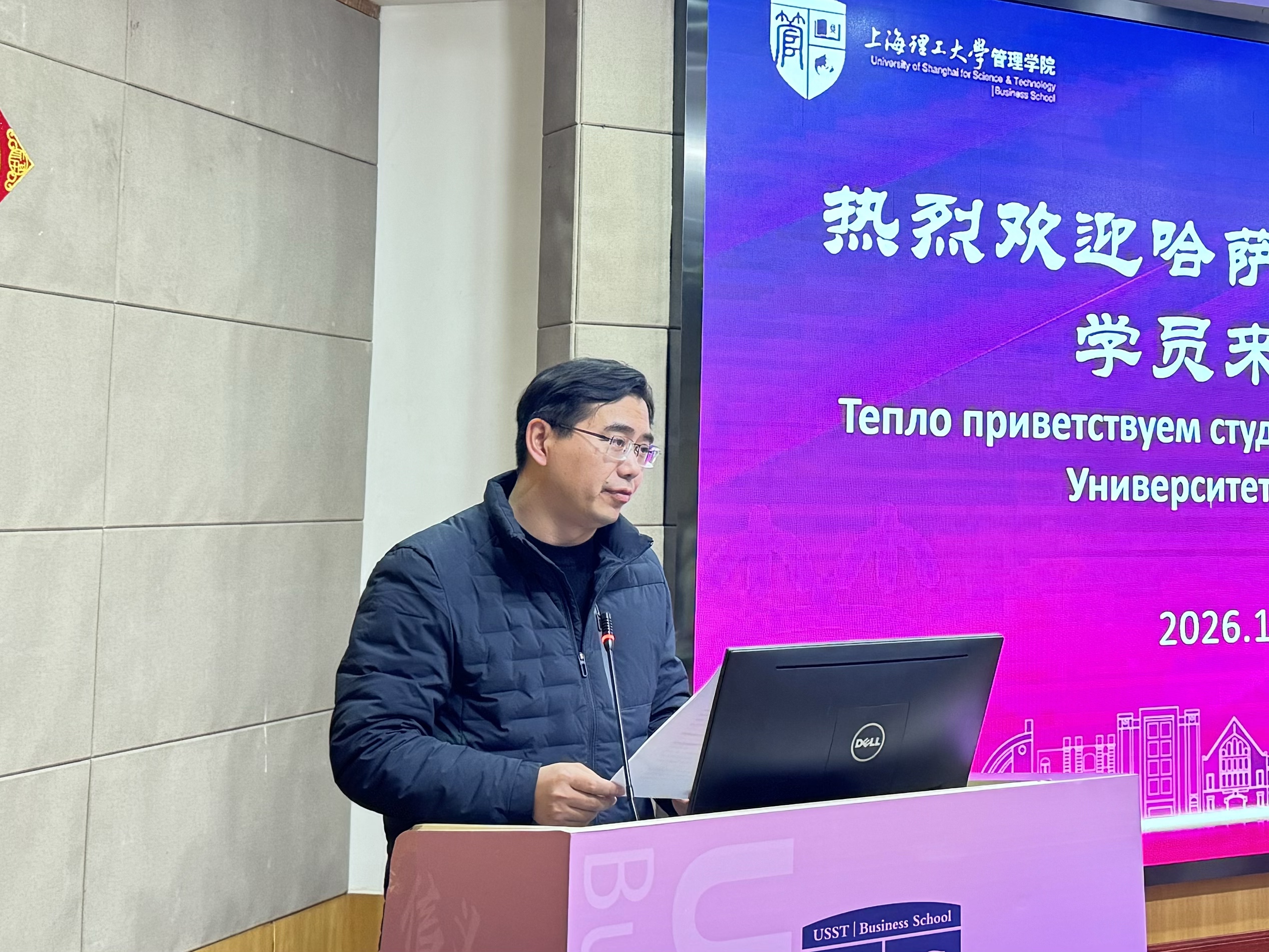 开班仪式上,管理学院副院长刘魏巍出席并致辞。他对第三期学员表示热烈欢迎,并回顾了前两期研学班在促进中哈教育交流、拓宽学员国际视野方面取得的积极成果。他认为,在全球经济一体化与“一带一路”倡议深入发展的背景下,此类跨境研学项目对于培养具备跨文化理解力、国际战略思维的高层次管理人才具有重要意义。他勉励本期学员珍惜学习机会,深入思考,积极互动,将理论知识与实践经验相结合,努力成为中哈经贸往来与人文交流的桥梁。