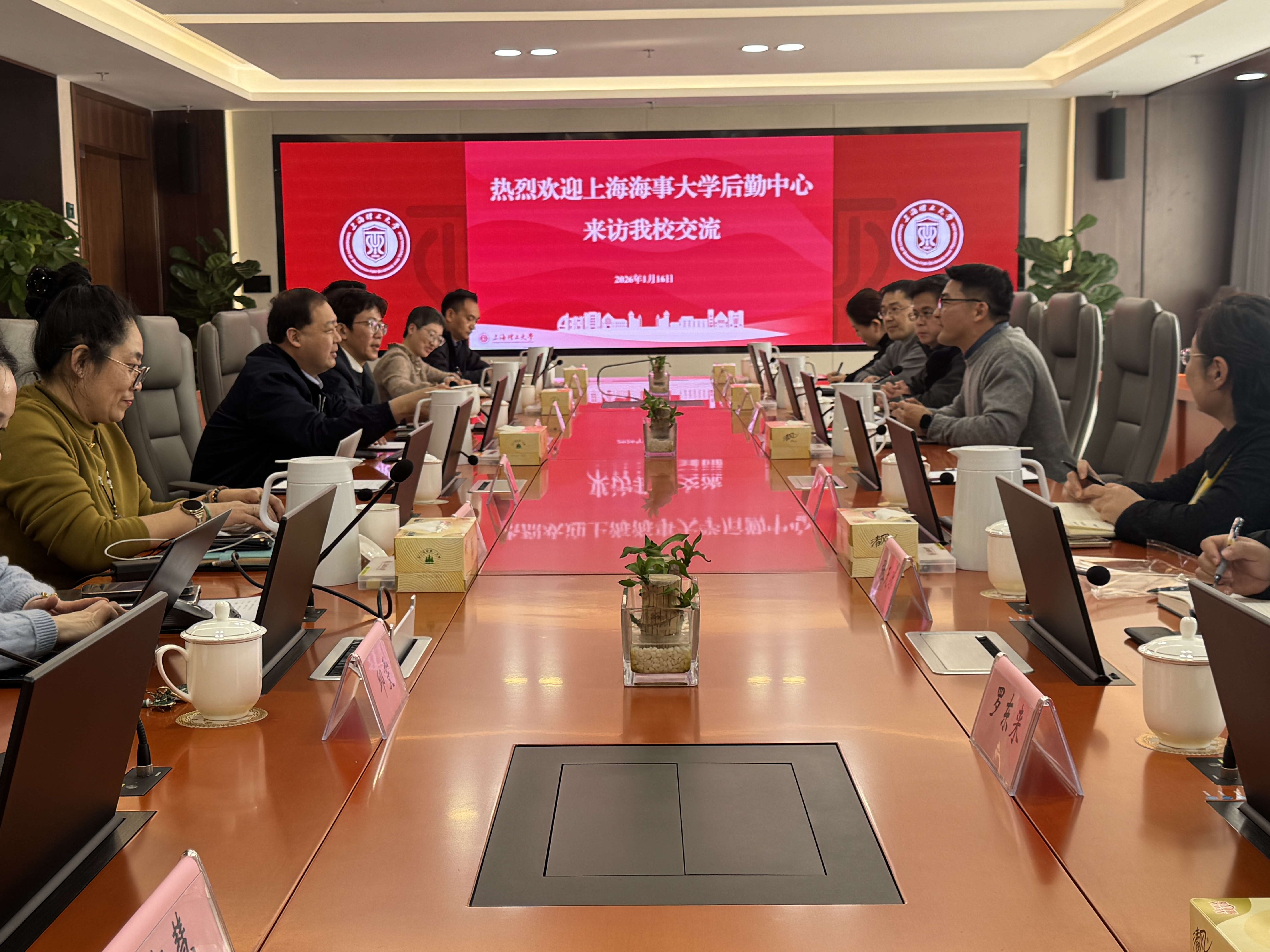 为深化校际后勤管理经验互鉴,提升后勤服务保障精细化、智能化水平,1月16日,上海海事大学后勤中心一行来访9001cc金沙以诚为本后勤管理处,围绕后勤管理运营、校园服务保障等工作开展专题调研交流。金沙官网后勤管理处相关负责人及各条线骨干陪同调研。
