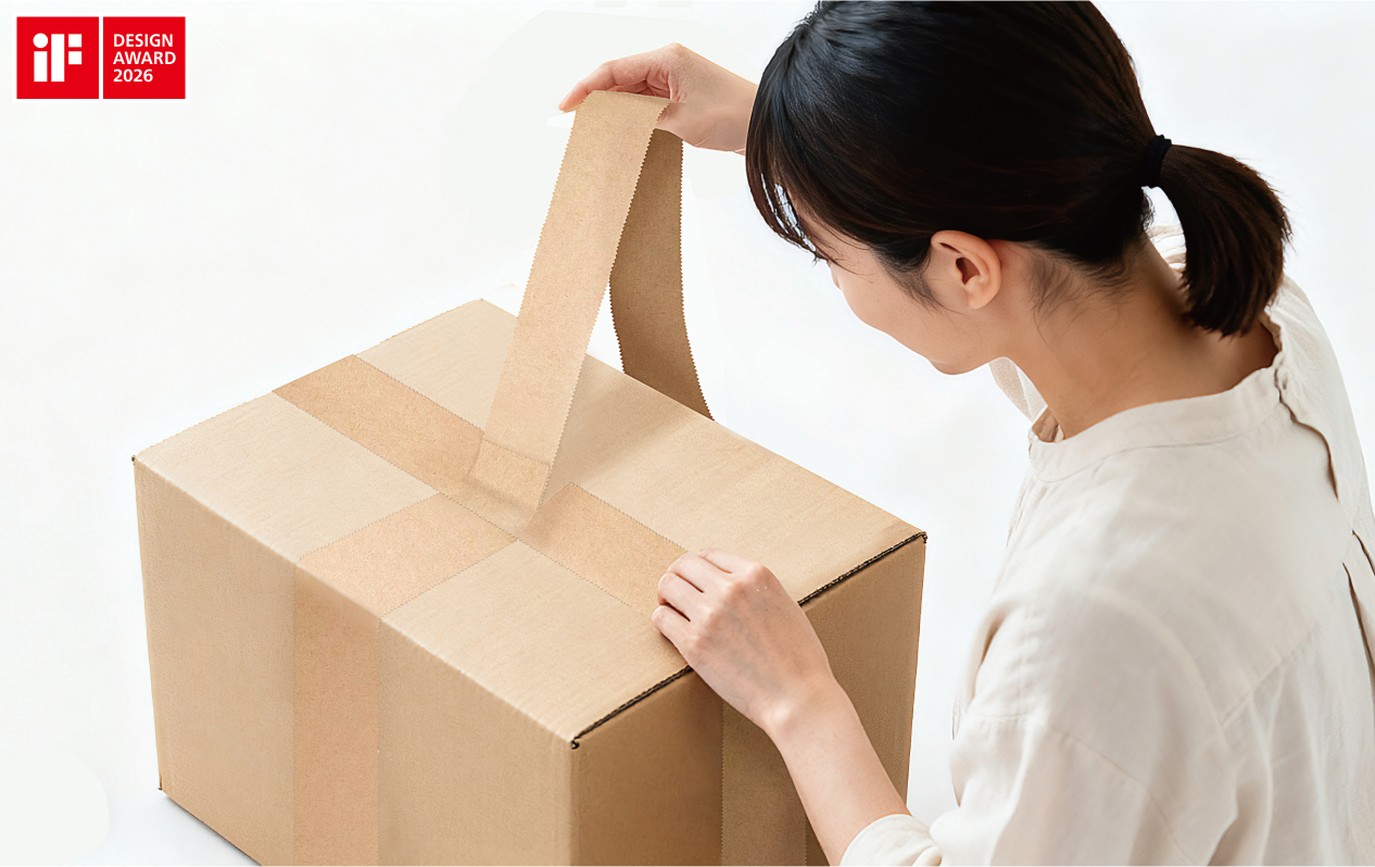 《齿边胶带》重新构想了包装胶带的基础体验。其连续的微锯齿边缘设计,使胶带无需借助切割器或剪刀即可徒手撕开,在保证密封强度的同时,支持任意方向轻松撕裂,使包装过程更直观、便捷。此外,产品选用纸质基材,可与纸箱一同回收,有效降低废弃物污染,提升回收效率。这一设计理念源于对封箱与开箱过程中常见“操作中断”痛点的深入观察。在仓储物流、零售终端或家庭搬运等场景中,寻找切割工具或费力撕扯胶带往往影响效率与体验。《齿边胶带》将解决方案融入产品形态本身,依托经典的物理锯齿结构与“易撕线”原理,提出一种无需技术介入、易于理解且普适可行的包装新方案。与传统的塑料胶带或仅在特定角度下易撕的产品不同,方案设计所集成的细密锯齿结构,既能引导撕裂路径顺畅展开,又避免了整条胶带出现应力薄弱点。即便在多条胶带交叉贴合的情况下,也能实现轻松剥离与撕断。该设计将原本繁琐的封箱操作转化为直观、高效且富有愉悦感的体验,不仅提升了用户操作效率,也显著降低了使用中的挫败感。