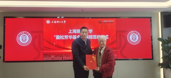 3月12日下午,9001cc金沙以诚为本“盈松芳华基金”捐赠仪式顺利举行。沈阳拓荆科技有限公司原执行副总裁、上海交通大学和美国斯蒂文逊理工学院退休教授凌复华向学校教育发展基金会慷慨捐赠150万元,设立“盈松芳华基金”,用于支持学校教育事业发展。校党委副书记、副校长刘德强,储能中学校长李文斌及上理工校友工作联络处、校基金会、党政办相关负责人出席仪式。