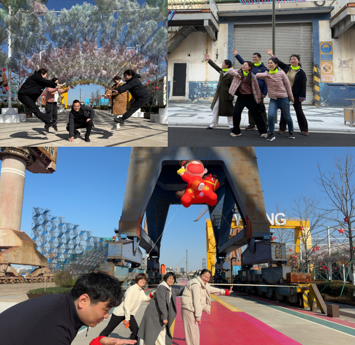 复兴岛船台PARK作为黄浦江畔独具特色的工业遗存改造空间,见证了百年滨江的沧桑巨变,其厚重的历史底蕴与焕新的时代气息,为本次活动赋予了特殊的意义。凝聚共识环节,组织员结合学校正在开展的树立和践行正确政绩观学习教育要求,对自己的工作职责和角色定位进行了简短交流。作为基层党建工作的骨干力量,专职组织员要始终以师生为中心,把夯实党建基础、建强战斗堡垒作为最大的政绩,以“功成不必在我,功成必定有我”的担当精神投入到党的建设和育人实践中。随后,大家随机分组,以小组团队形式参与各类限时竞答,在参观学习现场多个特色设计和展览的同时进行指定点位打卡,完成“红色印记寻踪”“协同攻坚解码”“沟通传递挑战”“集体智慧闯关”等专题系列项目任务。现场氛围紧张而热烈,大家有序分工协调、相互支持鼓励,在放松身心中进一步增进了了解与信任、强化了团队认同和集体荣誉感。