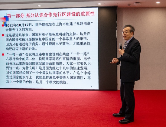 4月12日下午,“汇聚侨海资源支持‘丝路电商’合作先行区创建研讨会”在上海举行。致公党丝路电商企业家、相关领域专家学者、政府有关部门代表相聚一堂,共话“丝路电商”合作先行区创建。会议现场管理学院杨坚争教授受邀在此次论坛上作“‘丝路电商’合作先行区建设的思路与措施”主题报告,从合作先行区建设的重要性、创建合作先行区的主要工作、上海的探索、发挥致公党在创建合作先行区中的作用等四个方面阐述了先行区创建的丝路和措施,报告受到与会人员的高度评价。他表示,侨海人士可以在加强丝路电商的调研、携手华侨华人社团共同举行丝路电商活动、联系丝路沿线国家政府机构和企业、开展跨境电商培训、发展小语种营销等方面做出贡献。杨坚争作报告【相关】媒体报道【中新网】上海汇聚侨海资源支持“丝路电商”合作先行区(chinanews.com)【新民网】“大零号湾”内,他们汇聚侨海资源,助力“丝路电商”合作先行区创建_今日闵行_新民网(xinmin.cn)【新华社】汇聚侨海资源 专家共话创建“丝路电商”合作先行区- 新华社客户端(xinhuaxmt.com)【闵行致公】【重点关注】汇聚侨海资源 支持“丝路电商”合作先行区创建研讨